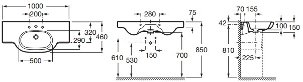Roca MERIDIAN umývadlo závesné 100 cm 732724B000rozmery: 100 x 46 x 15 cm, druh montáže: na stenu