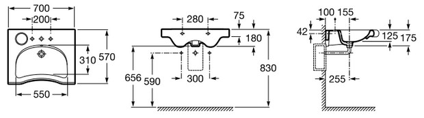 Popis Roca MERIDIAN zdravotné umývadlo 70 cm 732724H000Roca rozmery: 70 x 57 x 18 cm, bezbariérové umývadlo, druh montáže: na stenu