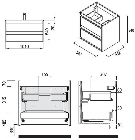 Salgar ATTILA skrinka s umývadlom 100 cm matná biela (Ukončený predaj)rozmery: 1010 x 540 x 460 mm, farba: matná biela, keramické umývadlo, 2 zásuvky