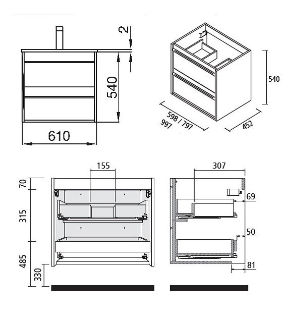 Popis Salgar ATTILA skrinka s umývadlom 60 cm dub eternitySalgar rozmery: 610 x 540 x 460 mm, farba: dub eternity, keramické umývadlo, 2 zásuvky