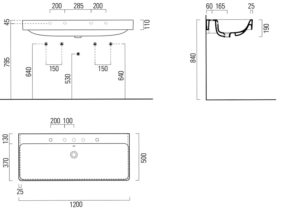Popis SAND keramické umývadlo 120 cm s dvomi otvormiSapho Umývadlo 120x50 cm s prepadom, s 2 otvoromi na batériu, farba: biela