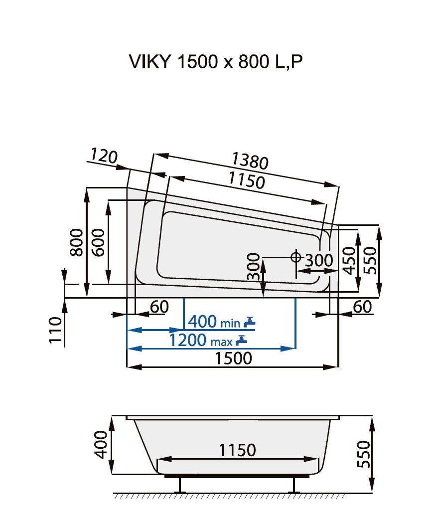 Popis Santech asymetrická vaňa VIKY 150 x 80 cm ľaváSantech objem po prepad: 165 l, spotreba vody: 120 l