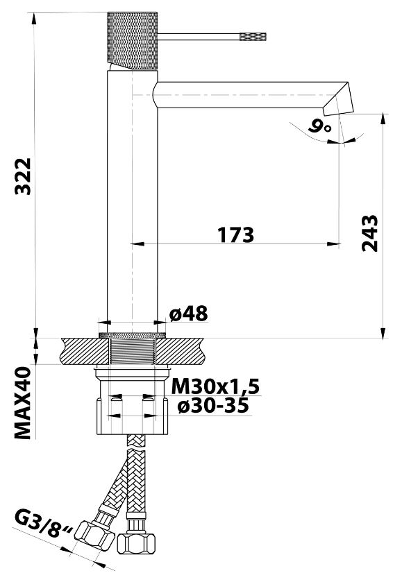 SOLARIS čierno-chrómová vysoká umývadlová batéria bez výpusteČierna matná umývadlová batéria s chrómovým ovládaním, výška 32,2 cm, páková