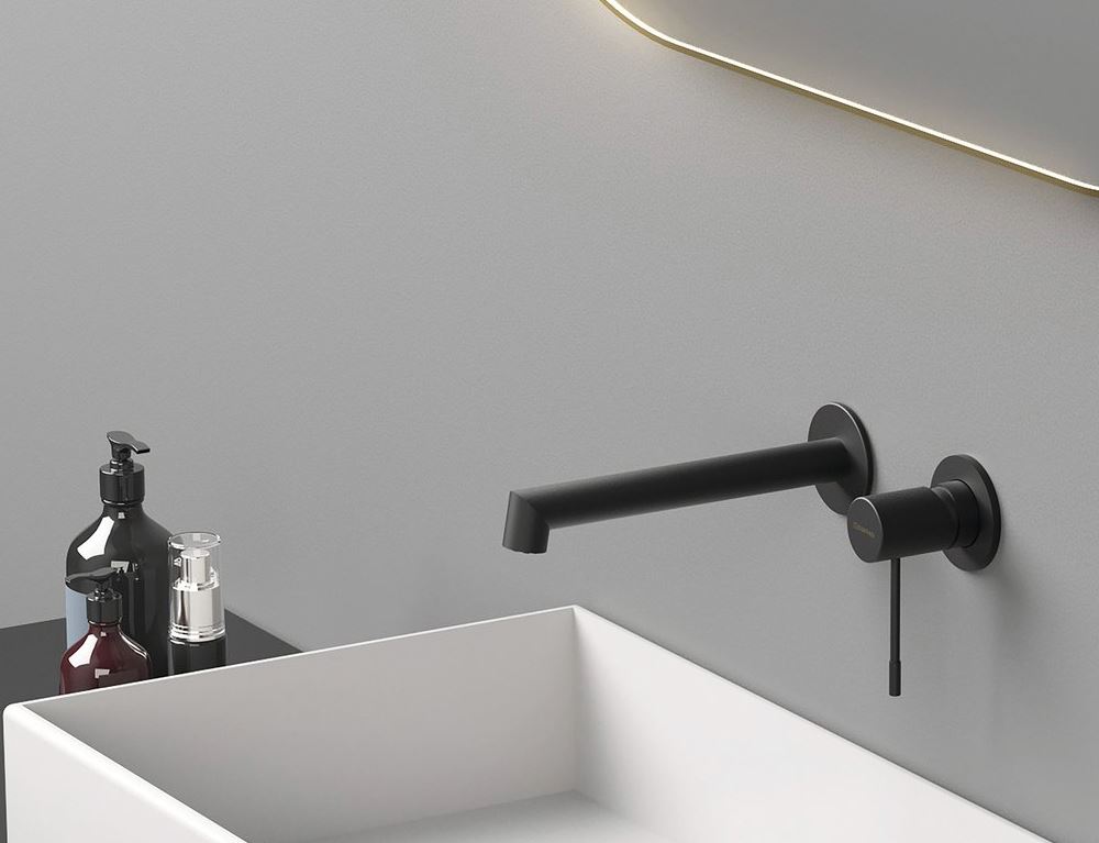 Popis SOLARIS čierno-zlatá podomietková umývadlová batériaSapho Dvojprvková podomietková umývadlová batéria, páková, čierna matná so zlatým ovládaním
