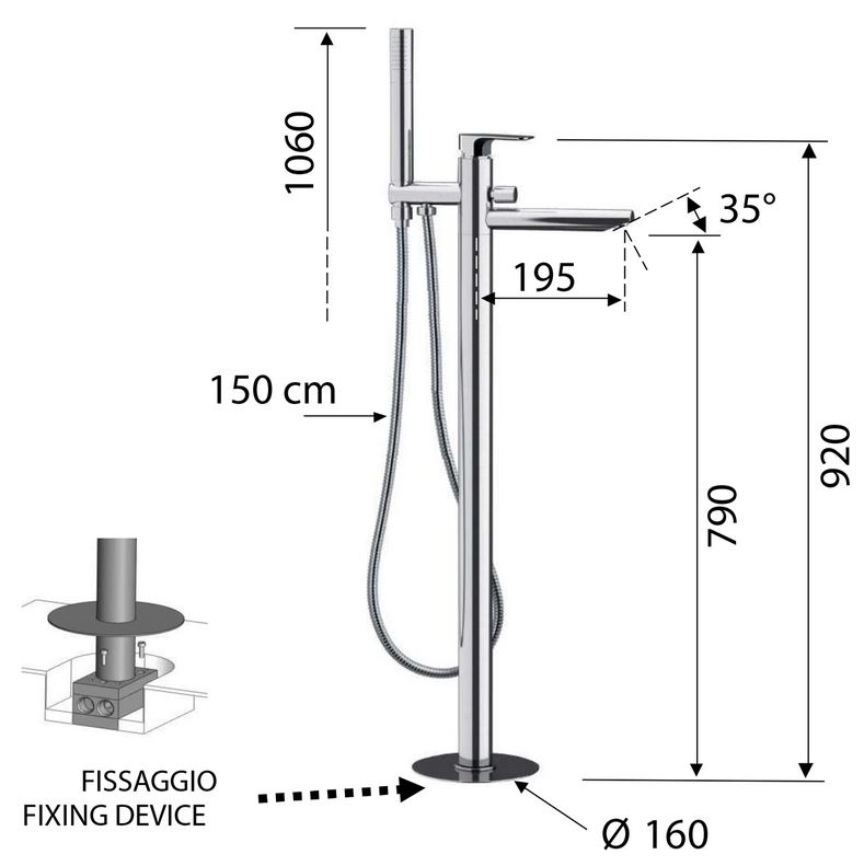 SPY vaňová batéria do podlahy chrómvýška: 920 mm, materiál: mosadz, montáž: do podlahy