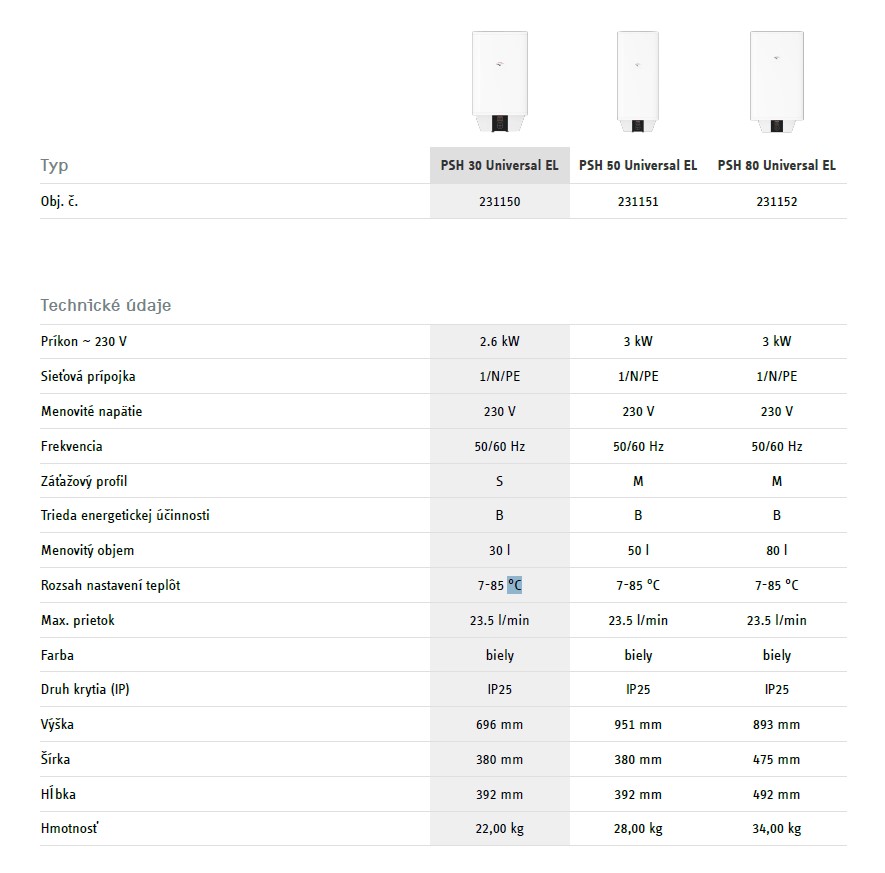 Viac informácií o výrobku Stiebel Eltron (TATRAMAT) PSH 30 Universal EL vám poskytne náš obchodník pre značku Tatramat (Stiebel Eltron) na tel.č.: +421 910 910 002
