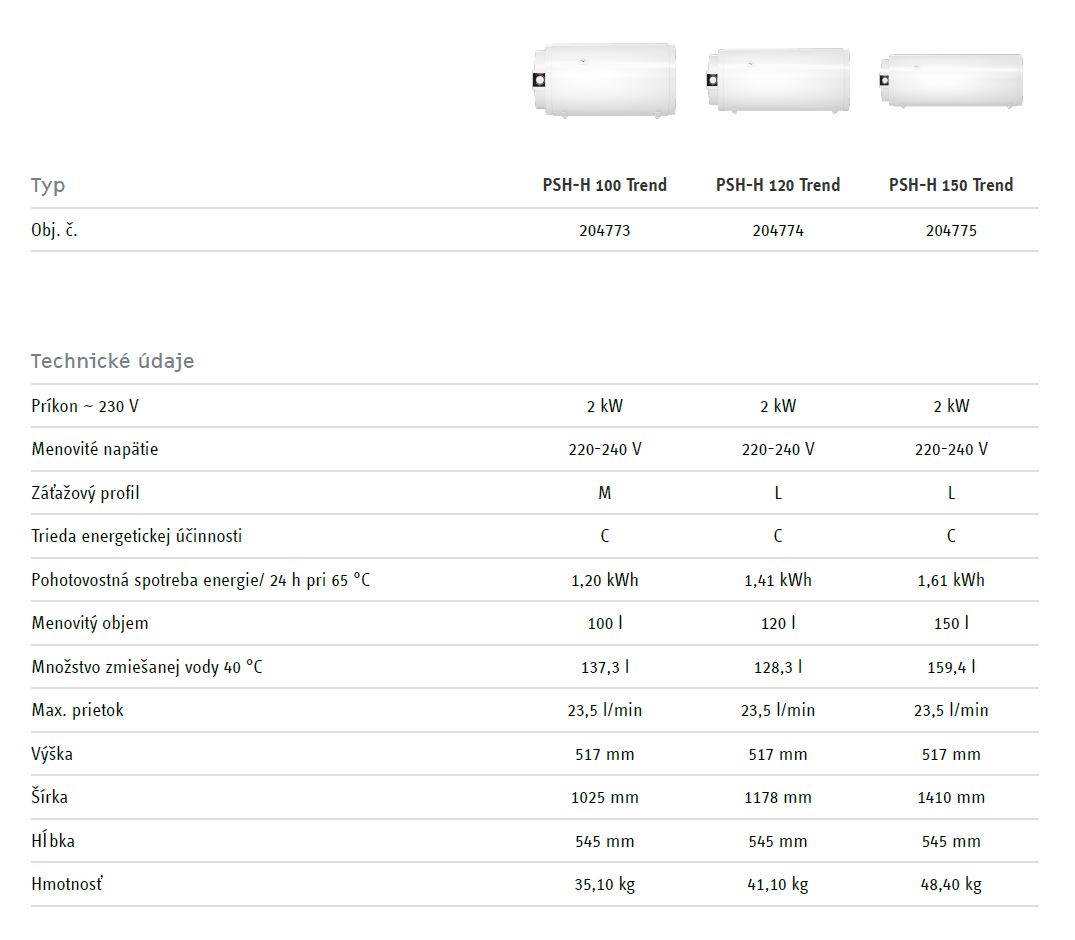 Popis Stiebel Eltron (TATRAMAT) elektrický ohrievač vody PSH-H 120 Trend ležatýTatramat (Stiebel Eltron) ohrievač elektrický závesný horizontálny, 2kW, Energetická trieda C,