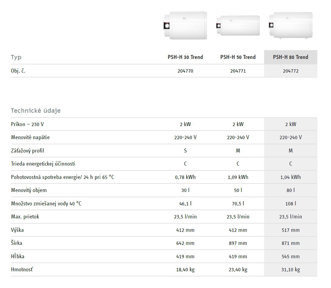 Popis Stiebel Eltron (TATRAMAT) elektrický ohrievač vody PSH-H 80 Trend ležatýTatramat (Stiebel Eltron) ohrievač elektrický závesný horizontálny, 2kW, Energetická trieda C,