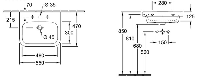 Popis Villeroy & Boch ARCHITECTURA umývadlo 55 cmVilleroy & Boch rozmery: 55x47 cm, farba: biela alpin, s jedným otvorom pre batériu