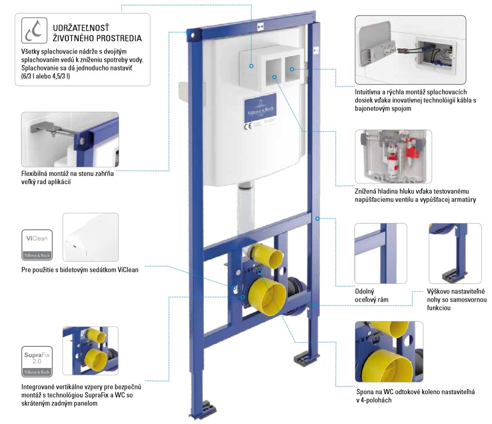 Popis Villeroy & Boch VICONNECT wc modul pre závesné wcVilleroy & Boch modul s konštruckiou do sadrokartónovej priečky, 3/6 lalebo 3/4,5 l