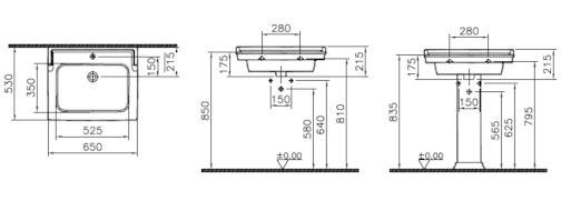 Popis VitrA RICORDI Retro umývadlo 65 cmVitrA rozmery: 65x53x21 cm, s prepadom, s jedným otvorom pre batériu, druh montáže: na stenu